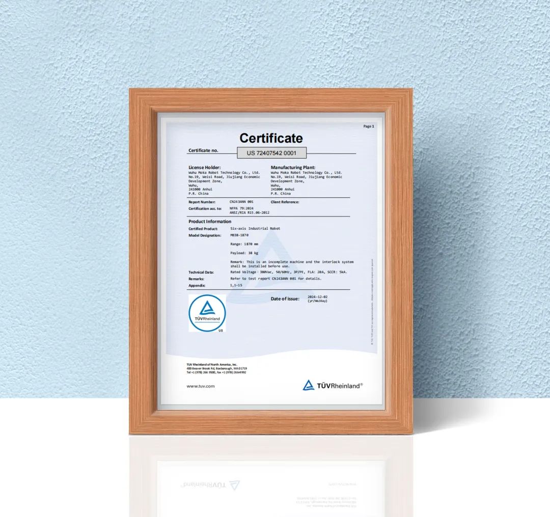 近日,在團隊共同努力下,藦卡機器人產(chǎn)品經(jīng)過嚴(yán)格的測試、檢驗、審核,憑借其高質(zhì)量和強有力的國際市場競爭力順利獲得了TüV頒發(fā)的北美認(rèn)證證書。此項證書不僅標(biāo)志著藦卡機器人產(chǎn)品符合國際相關(guān)嚴(yán)格標(biāo)準(zhǔn)和國際市場要求,同時也為藦卡機器人進一步拓展全球市場奠定了良好基礎(chǔ)和強力的支撐。